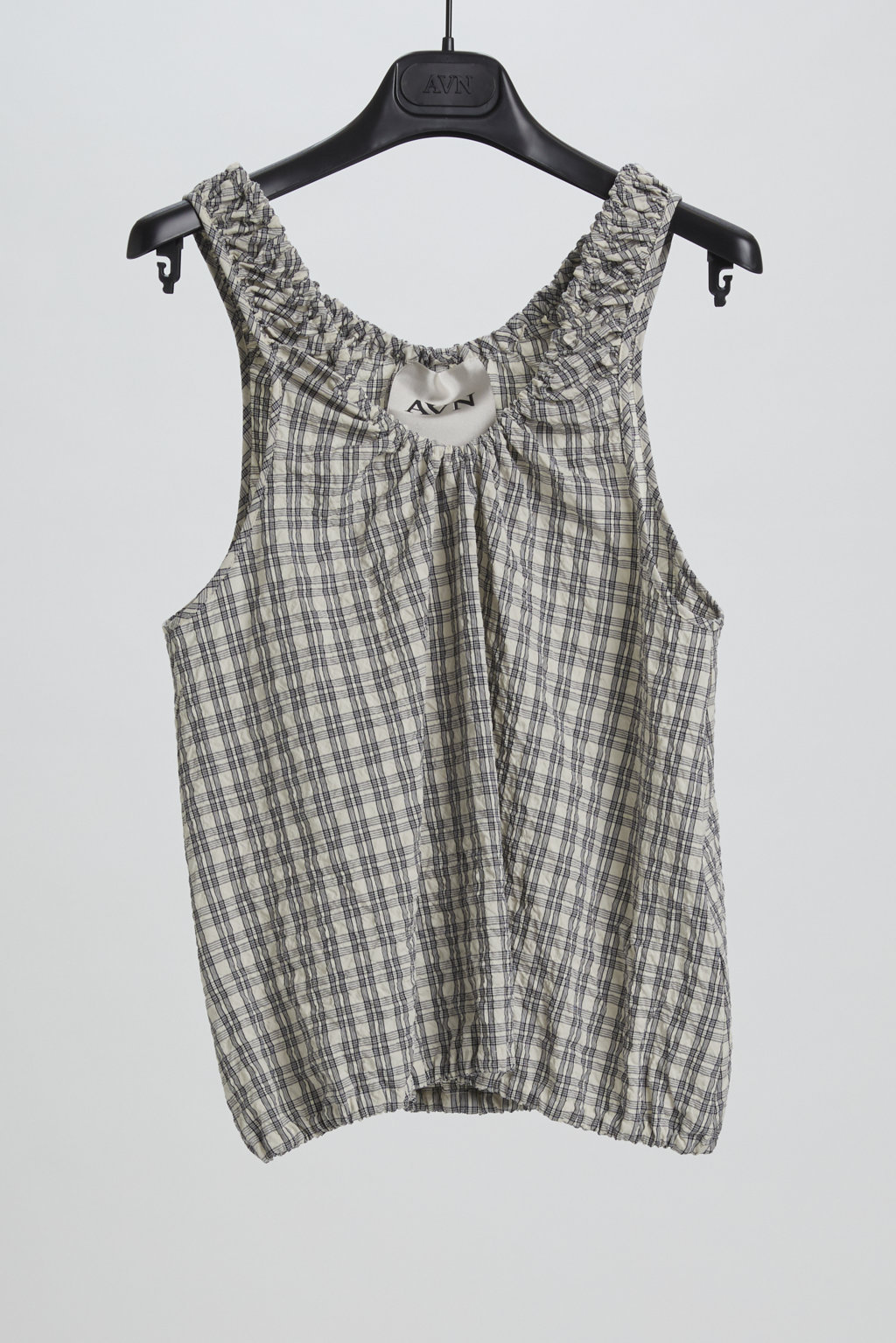 No sleeves top with halter neckline.