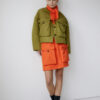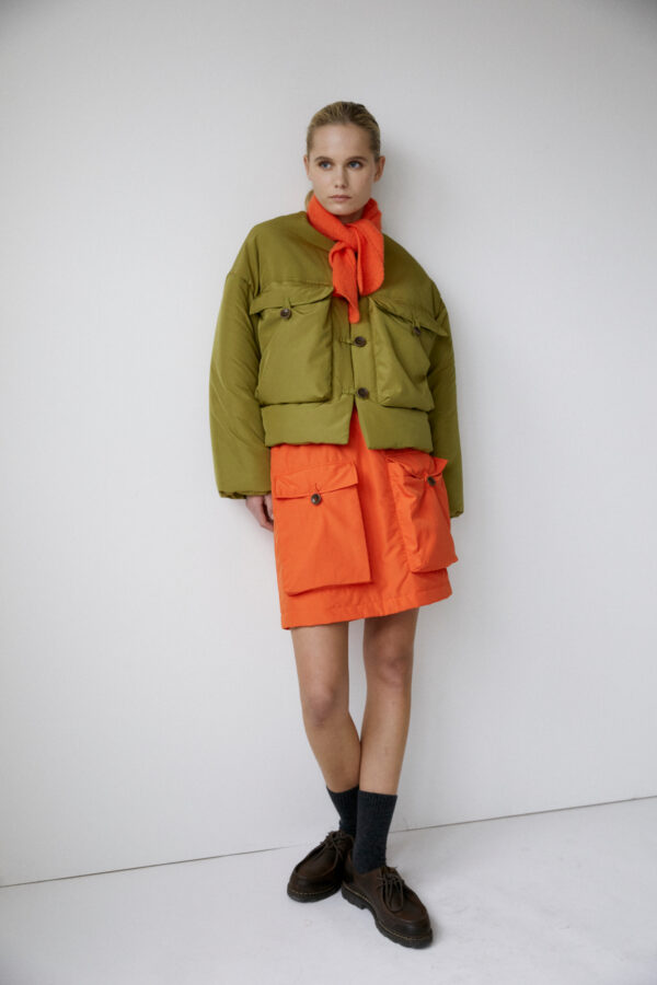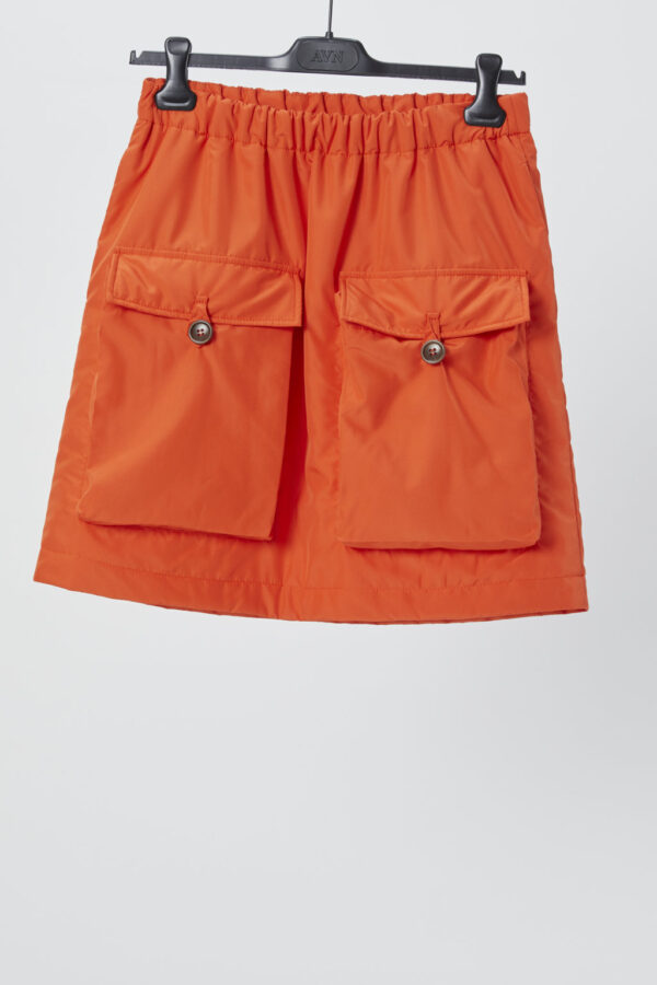 Padded short skirt with elastic at waist and two patch pockets on front.
