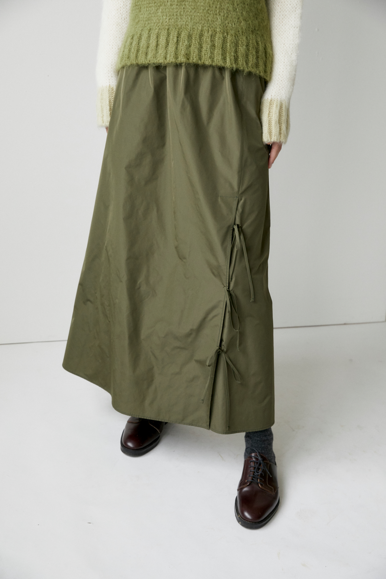 Long skirt with bows on a side.