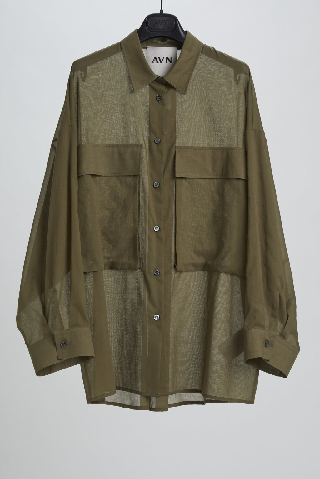Long sleeves cotton voile over shirt with two big patch pockets on front.