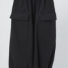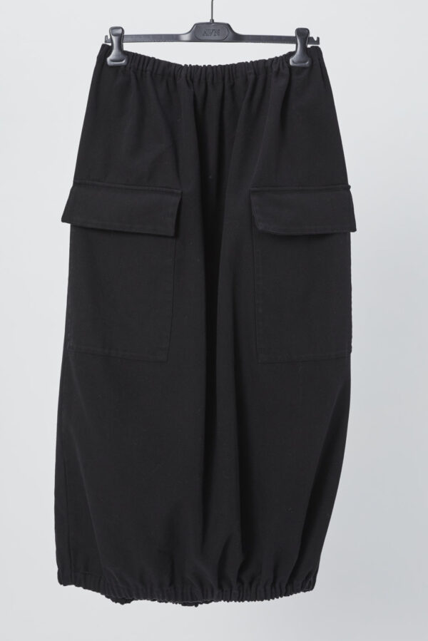 Long skirt with elasic buttom and two front patch pockets.